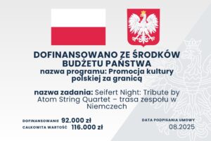Zespół ponownie łączy siły z Fundacją im. Zbigniewa Seiferta, z którą od lat współpracuje przy projektach koncertowych i edukacyjnych. Tym razem Atom String Quartet wystąpi z czterema koncertami w Niemczech, prezentując repertuar z płyty „Seifert” – wyjątkowego albumu poświęconego twórczości wybitnego polskiego skrzypka jazzowego Zbigniewa Seiferta.